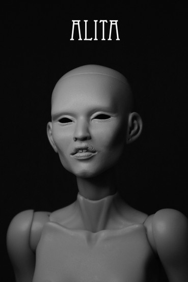 The doll prototype hand sculpted by Emilia Nieminen and cast in extremely limited quantities (30 dolls annually, 5 dolls per resin tone) in special high quality polyurethane resin. The resin was specially developed to have translucency that mimics human skin: eyelids and ears turn translucent and red when held against light.